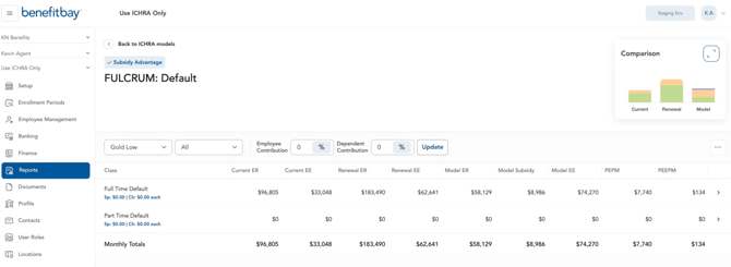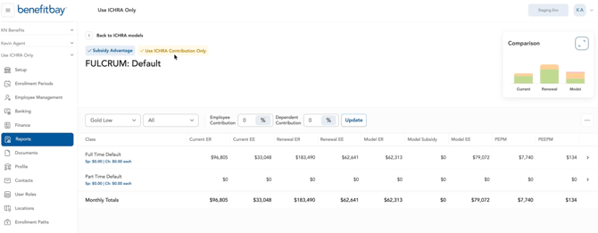 When the "Use ICHRA Contribution Only" setting is switched on, the model comparison excludes any potential subsidy adjustments. You may prefer to present quotes without subsidies, as premium tax credits are based on total household income, while census data only includes employer-reported salary information.