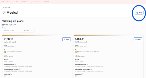 When you are viewing the plans, you will see the “Help” option at the top right of your screen.