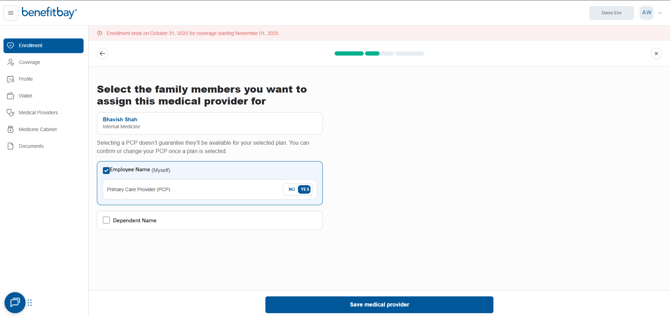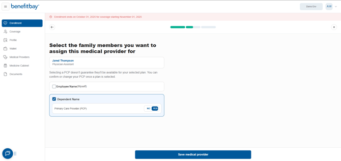 For each dependent seeing a different primary care provider, select "Yes" for that provider and click "Save Medical Provider" to add them to the correct family member.