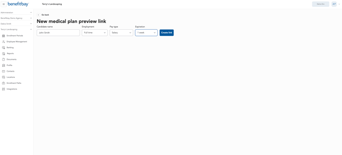 Please only create one link per candidate. Enter the information based on the position the candidate would hold at your company (the preview shopping will calculate the specific ICHRA contribution using your company contributions based on the class type selected).