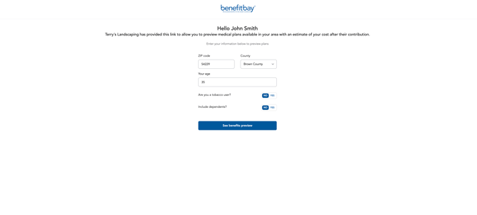 Once you've sent the preview shopping link the candidate will input some basic information to be able to preview their plan options. The plan costs shown to the candidate are based on their age, location, and your defined employer ICHRA contribution.