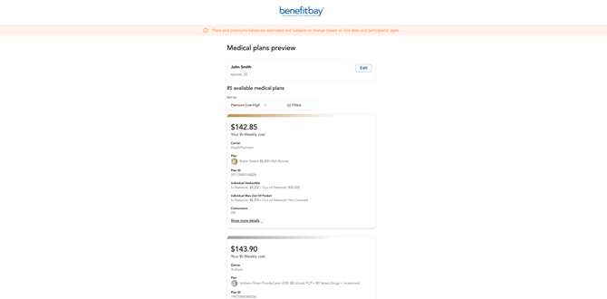 Once they've added their general information they can preview the plan options. This preview shopping will provide candidates the ability to see what types of plans are available to them and the potential cost to them.