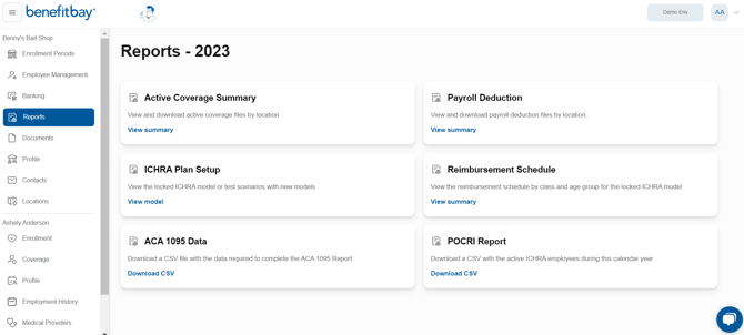 Select "Reports" under your company's name on the left navigation bar. Change the "Coverage Period" to the prior year. The PCORI Report will be located on the bottom right side of the screen, click to download.