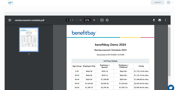 - Reimbursement Schedule: A PDF listing the employer contributions for each employee's age and class. This is a helpful report to save for your staff onboarding or recruiting team.